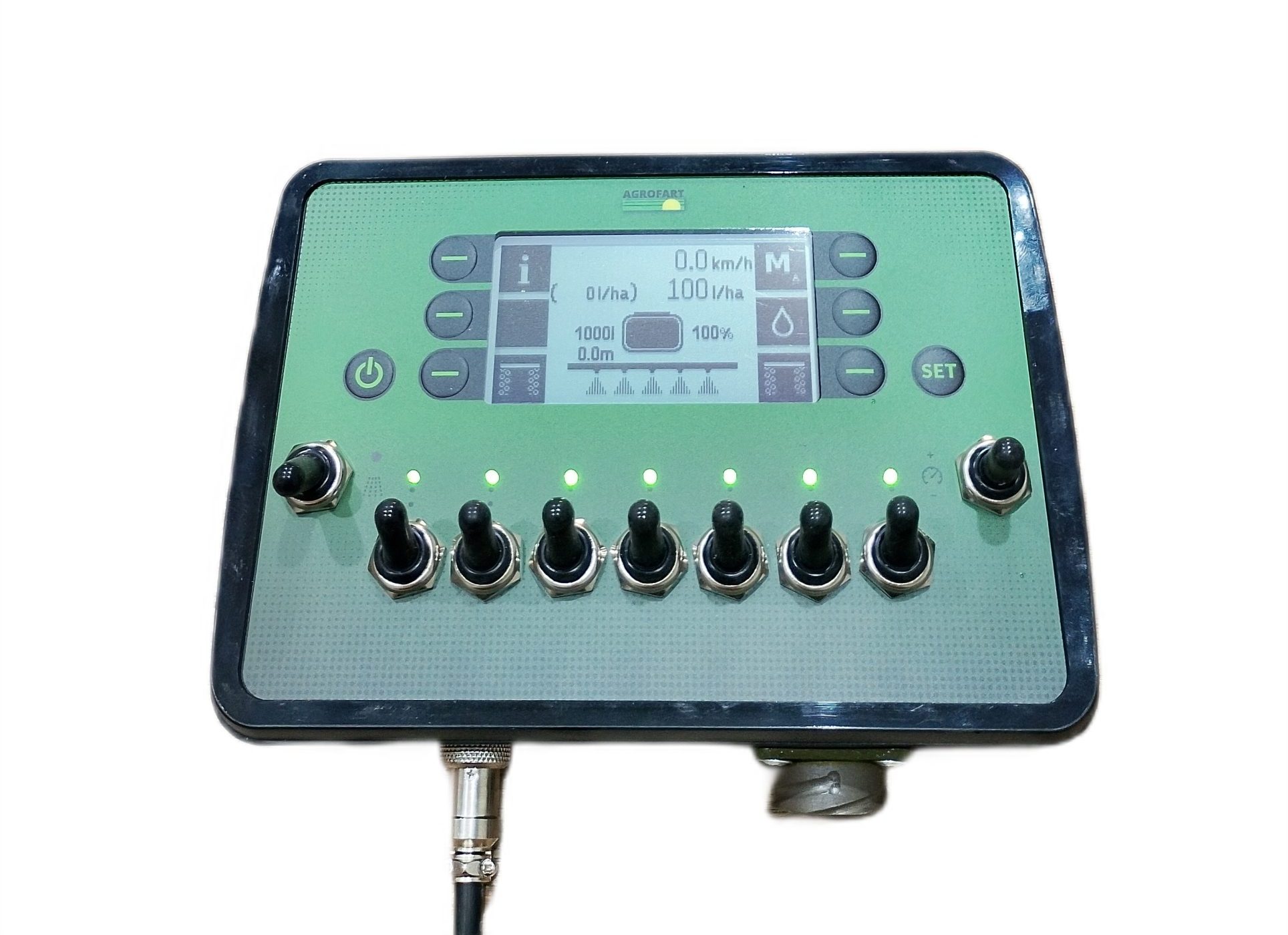 - posiada wbudowane liczniki: ilość cieczy, dystans, ilość hektarów i czas.